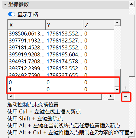 在图层面板中,仅设置elevation.efd图层可见。点击计算->创建数据体->几何体->多边形,生成多边形1图层。基于结构网格->提取子网格1图层中河流所在位置,按住Alt+Ctrl键,连续点击鼠标左键绘制河流弧段。在该图层属性面板数据子面板中,点击坐标参数中的删除键