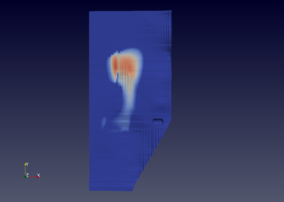 工具,使视角变为仰视。视图窗口中的污染区域如下图所示: