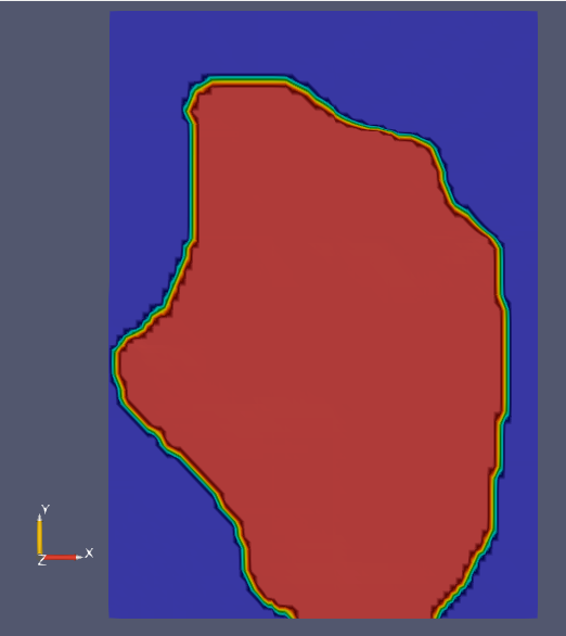 使用交互添加网格工具,可以随机查看内外部分的网格Ibound值,如下图所示,内部(红色)区域为1,即为活动单元格,外部(绿色)区域为0,即为不动火单元格。